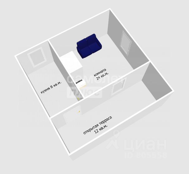 Дом стоит на ленточном фундаменте, материал стен - брус (150х150 мм). Отопление - камин (под ним отдельный фундамент). В доме 1 комната, кухня, открытая терраса (на зиму закрывается).