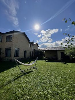 Две самостоятельные половины разделены между собой зеленой изгородью из туй. Каждая половина имеет свой земельный участок по 6 соток. У дуплекса есть общая постройка с верандой и местом для хранения, а также с помещением для обустройства бани.