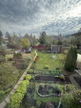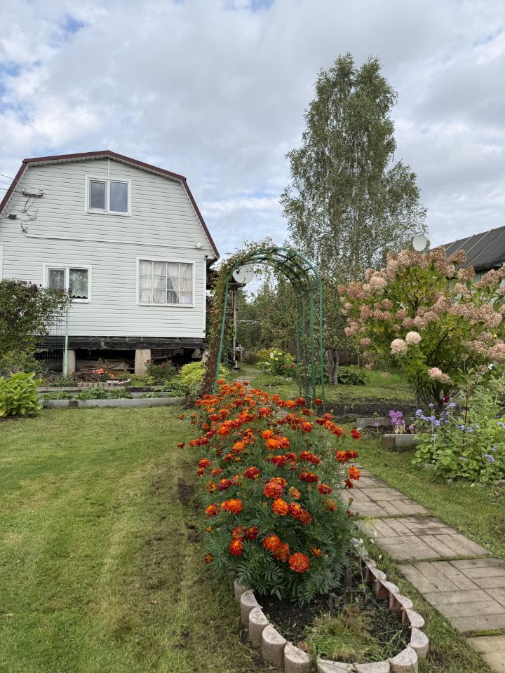 Участок разработан, ухожен, имеются посадки ягодных кустарников, яблони, груши, много видов редких цветов цветущих с ранней весны до поздней осени.