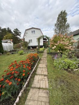 Дорожки и все проходные места на участке выложены тротуарной плиткой, имеются две теплицы. Вода чистая из скважины (собственность трех соседних участков) через насосную станцию.