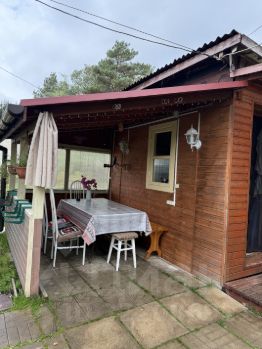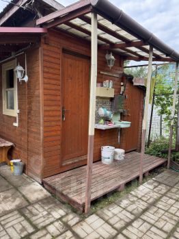 На участке небольшой 4х5м. двух этажный дом каркасно щитового типа, утеплен обшит сайдингом, установлены стеклопакеты. На втором этаже просторная спальня с свежей качественной отделкой деревом и новой мебелью. На первом этаже спальня и светлая уютная веранда с угловым остеклением на которой будет приятно проводить вечера за чаепитием. В доме установлен охранный комплекс с GSM сигнализацией с управлением с любого смартфона, также установлено пассивное видеонаблюдение участка. Важный момент-в доме нет кухни поэтому отсутствуют запахи, грязь, нагар, копоть и тд.