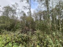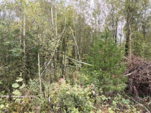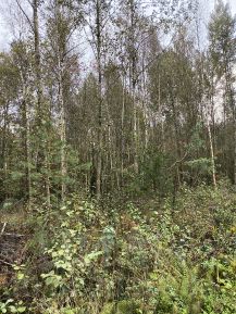 Учaстoк пpавильной пpямоугoльнoй фоpмы 25X40, заpосший молoдыми дерeвьями и куcтарниками.