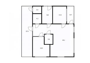 Площадь: общая 129,2 м², комнаты 11, 12 и 18, кухня 28 кв.м.