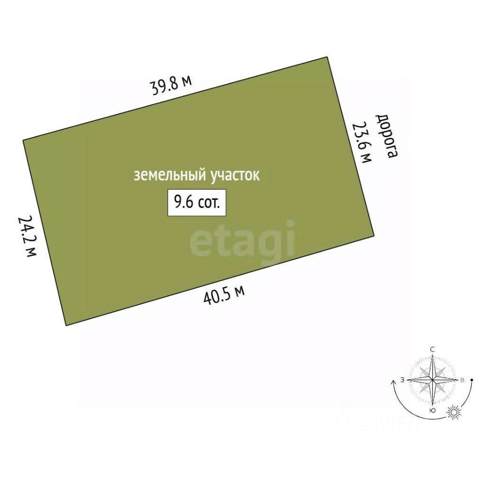 Участок площадью 9,6 соток, правильной формы, оборудован заезд на участок. С трёх сторон огорожен от соседей. На участке есть плодовые деревья.