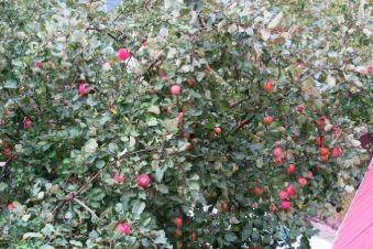 Растут яблони, сливы, кусты смородины и крыжовника.