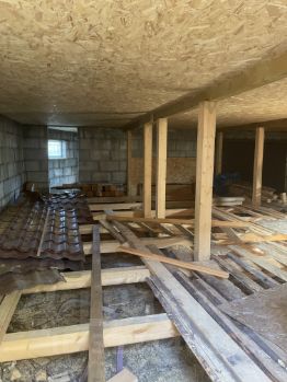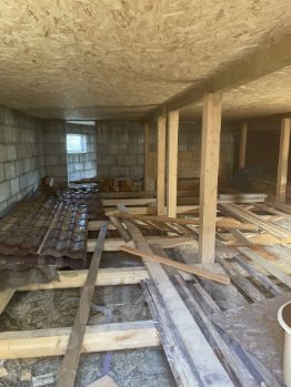 Дом 3 этажа. Первый из бетона - технический. Предполагается гараж, хоз блок. Второй этаж - веранда и спальни