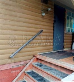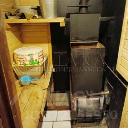 Первый этаж - кухня-гостиная, комната, небольшая сауна (пол бетонный со сливом), отопление печное; стены - брус (обшиты блок-хаусом), внутренняя отделка - вагонка.