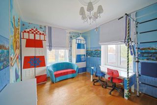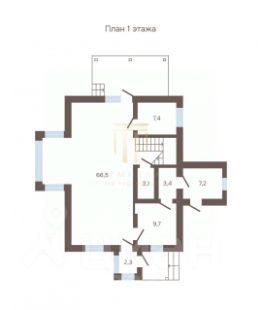 Высота потолка первого этажа 3,2 м. Гостиная-столовая-кухня более 50 метров.