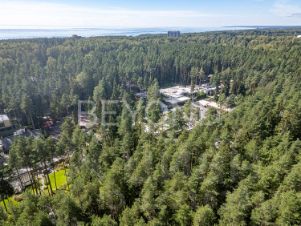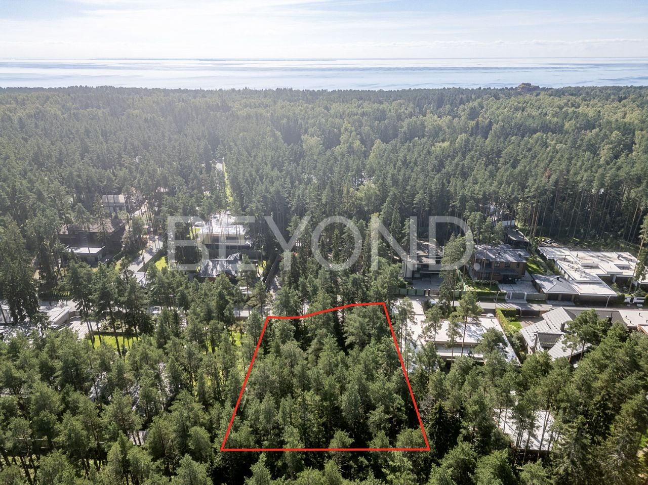 Поселок Комарово известен своим особым микроклиматом: вековые сосновые массивы защищают территорию от ветров и создают целебный воздух, насыщенный фитонцидами. Рядом с участком находятся живописное озеро Щучье и песчаные пляжи залива.