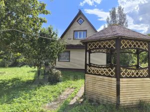 2-х этажный дом (2 этажа и жилой чердак с кроватями) (жилая площадь без чердака 43,4 м² + 10,36 м² веранда) в "СНТ Эликсир" на участке 6 соток (согласно кадастровой выписке и выписке ЕГРН: 609+-10 м²) с баней, летней кухней и вспомогательными служебными постройками.