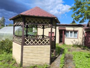 Вспомогательные постройки: Летняя кухня с 2-мя пристроенными сараями (дровницей и мастерской) и баня (парилка-мойка с дровяной печью с камнями и небольшой тамбур для переодевания). Строения обшиты сайдингом.