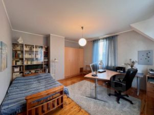 На первом этаже расположились пригожая, холл, большая кухня 26 м2, гостиная , кабинет и санузел. Из кухни выход на просторную веранду с окнами до пола, из которой отличный вид на уютный зеленый двор.