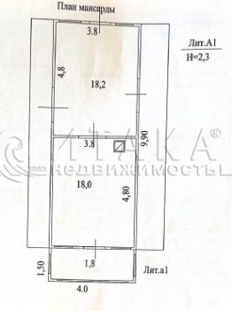 Мансардный этаж: помещение 1 18.2 кв.м, помещение 2 18.0 кв.м, балкон - 1.8 кв.м.