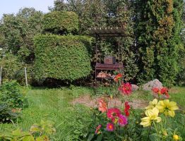 Дер. Красный Октябрь, жилой дом с надворными постройками, площадь 214 м2, одноэтажный с цокольным этажом, земельный участок 25 соток. Расположен в живописном месте, на полуострове, 1 км от Череменецкого Ионна-Богословского монастыря. 100 метров до Череменецкого озера, 150 метров лес. Дом из пенобетона, обшит сайдингом, баня, дровник. Дом теплый, есть печное отопление, в гостиной теплый пол, 4 комнаты, кухня, ванная комната (душ, туалет, стиральная машина), вода из скважины, веранда и открытый балкон с видом на озеро. В цокольном этаже гараж, теплый погреб, стеллажи для хранения инвентаря, надувной лодки, инструмента, культиваторов, рабочей одежды, в цокольный этаж ведет винтовая лестница из веранды (удобно не надо выходить на улицу). На участке: большая детская площадка, много туй, можжевельник, яблони, сливы, груши, алыча, вишни, смородина, жимолость, розы, гортензии, сирень, грецкий орех. Лето на 2 недели раньше, чем в Питере, по количеству солнечных дней это место называют Северным Крымом, хороший пляж. В старину это место было монастырским подворьем (сохранилось 2 дома). Хорошие соседи.
