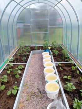 *Участок 526 кв.м., ровный. Зона барбекю. Теплица. Две высокие грядки. За теплицей грядка с клубникой. Яблоня и слива.