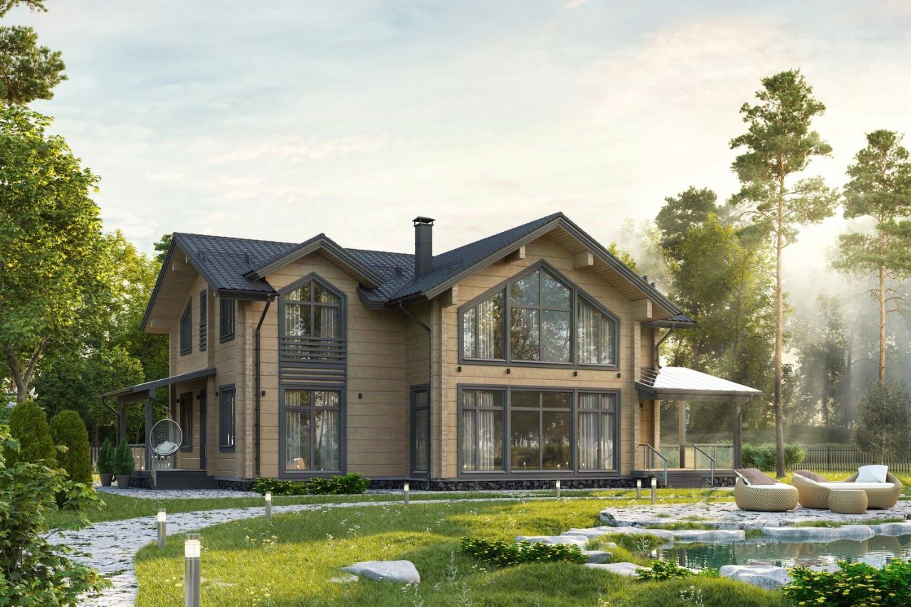 — Материал: премиальный клееный брус "Статус" (210410 мм) собственного производства — тёплый, надёжный и эстетичный.
