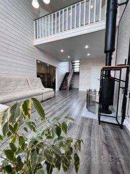 Дом в продаже с полной отделкой, со всеми коммуникациями, установлена кухня с техникой, оборудованы санузлы, в гостиной установлен дровяной камин.