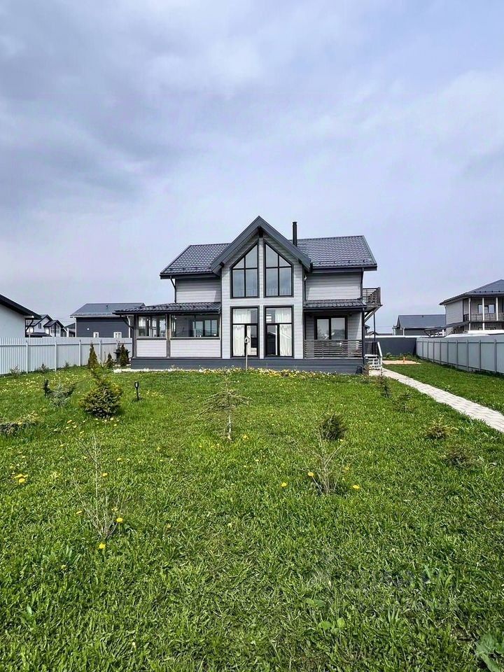 Коттедж площадью 220 м кв построен по каркасной технологии из сухой доски.