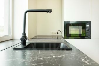 - Мебель: кухонный гарнитур со встроенной техникой, диван, обеденный стол и стулья