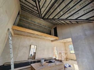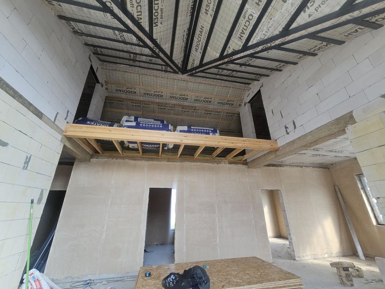 Коттедж: стены газобетон с утеплением ( теплый, зимний), фундамент монолитная плита.