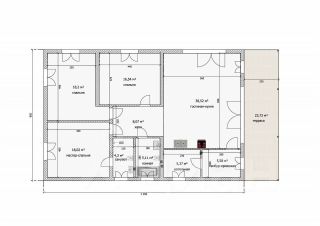 Планировка дома: 3 спальни, просторная кухня-гостиная, котельная, коридор, 2 санузла: 1 общий и второй, находящийся в мастер-спальне.
