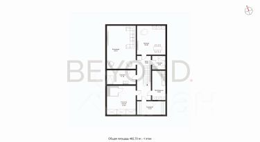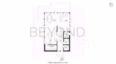 На первом этаже расположена просторная светлая гостиная со вторым светом и панорамными окнами, зона столовой и кухни, гостевой санузел и хозяйственная зона при кухне.