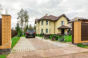 Участок сухой, ровный, правильной формы. На участке проведены ландшафтные работы, выполнен дренаж, завезена плодородная почва, высажены деревья и декоративные кустарники. Дорожки и парковочное место вымощены брусчаткой. Перед домом просторная зона для отдыха, предусмотренная для барбекю. Забор выполнен из евроштакетника и кирпичных столбов, ворота откатные.