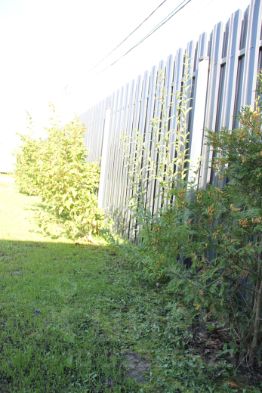 - На участке растут яблоня, груша, крыжовник, черная смородина, туи и ели.