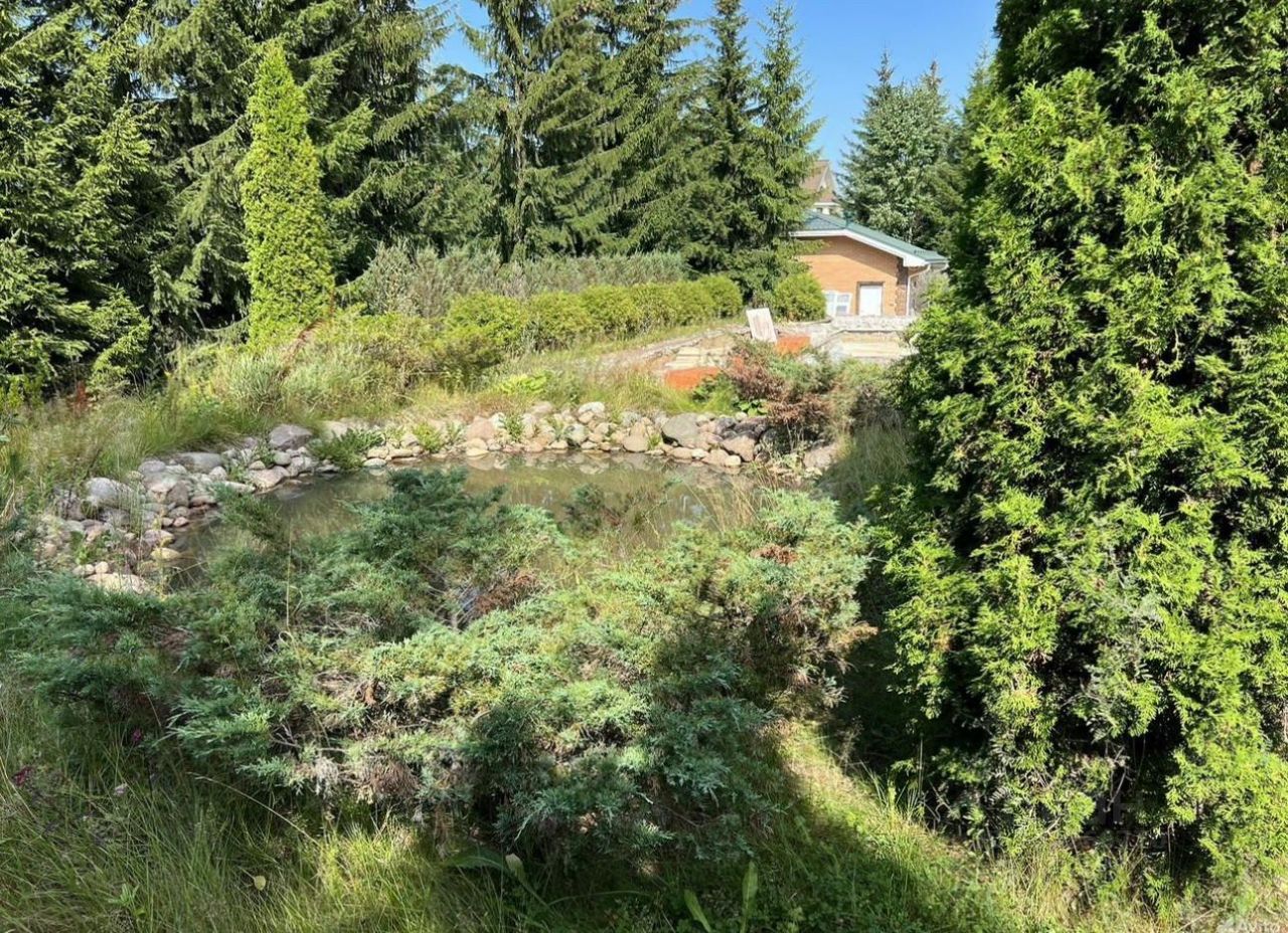 Уникальный ландшафтный дизайн, с прудом и водопадом.