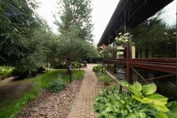- Высажены голубые ели, можжевельник, азалия, клубника, плодовые деревья вишни, яблони;