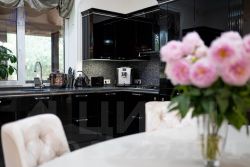 - Дизайнерская итальянская кухня SCAVOLINI с техникой Miele и столешницей из натурального черного мрамора;