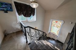 - Лестницу из массива дуба огораживают красивые кованные перилла;