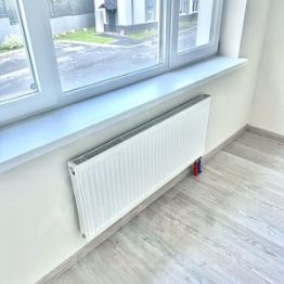 Таунхаус продается с полной чистовой отделкой: стены покрашены, на полу ламинат, кварц-винил, межкомнатные двери, в санузлах полный комплект сантехники. Отопительные трубы проходят в стяжке, установлены радиаторы отопления. Установлены электро-котел и бойлер. Коммуникации городские: электричество, вода.