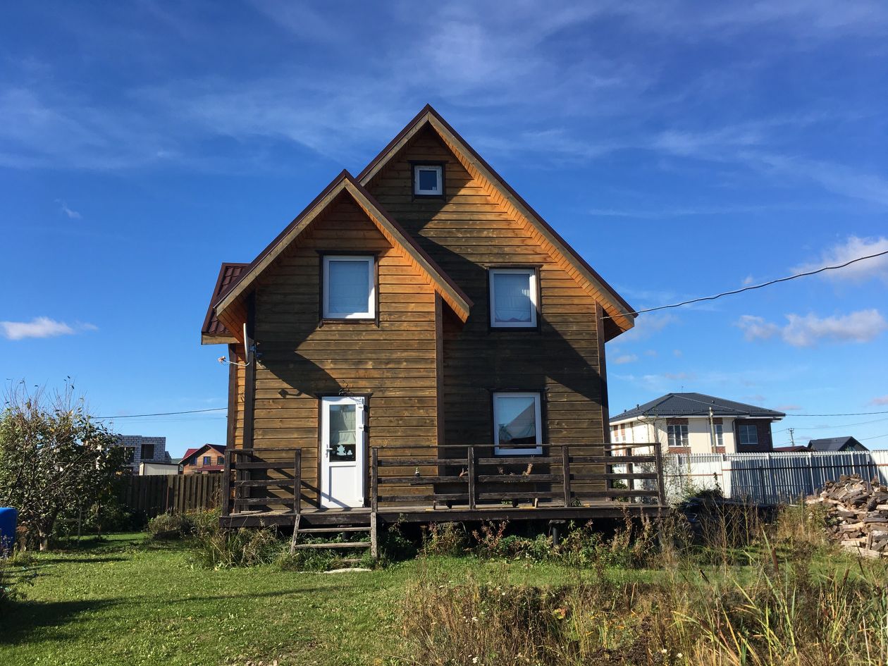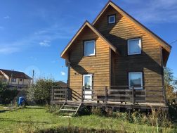 Дом каркасный 115 м.кв., два этажа плюс чердак 20 м.кв. На первом этаже: прихожая, техническое помещение+санузел, гостиная, кухня, с выходом на открытую террасу. Второй этаж: три спальни, санузел с душем. Третий этаж: чердак, оборудованный под кладовую.
