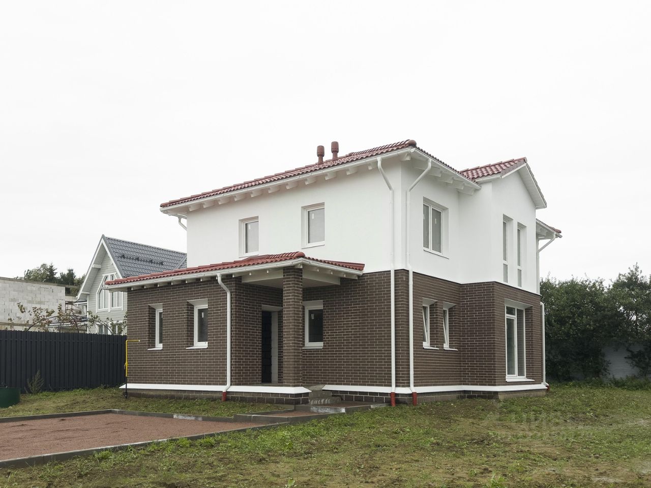 Авторский архитектурный проект в европейском стиле. Единая стилистика группы домов Nordbau выигрышно выделяется на фоне остальной части поселка.
