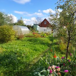 Участок площадью 10 соток имеет статус индивидуального жилищного строительства. Выполнена отсыпка и дренаж участка. На участке растут яблони, вишни, сливы, малина, смородина, крыжовник. Есть 4 капитальные теплицы, грядки, цветники. Перед домом очень много свободного пространства-есть место для реализации ваших идей! На участке есть баня, построенная по индивидуальному проекту, что станет отличным местом для отдыха и релаксации. Вся мебель остается. На участке есть свет, вода, газ-балон. Один собственник, прямая продажа.