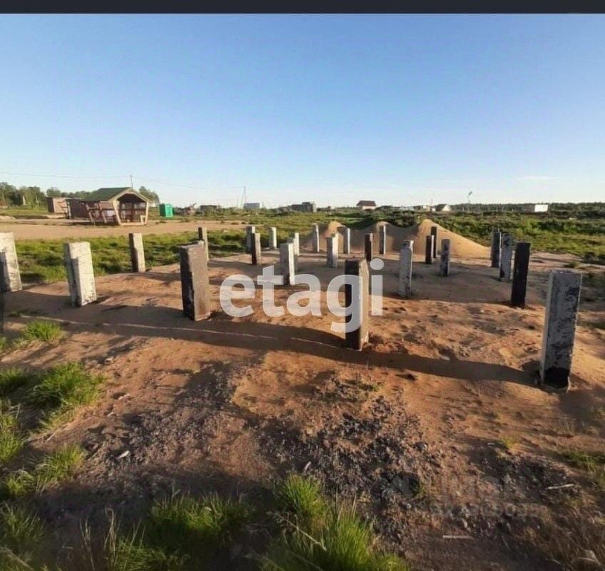 Участок ровный, сухой, разработан, отсыпан подъезд к нему. На участке установлены сваи под дом 8*8 .