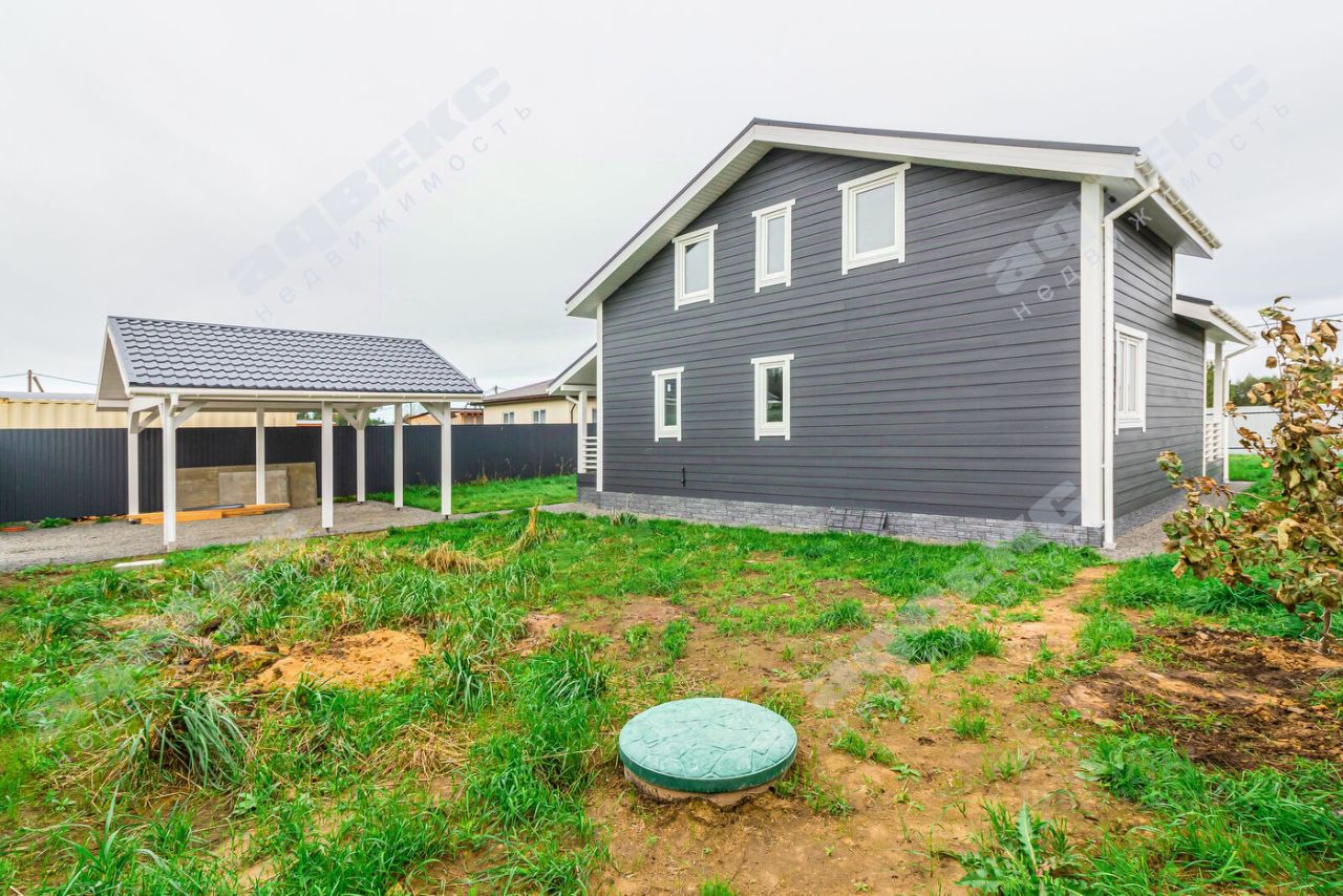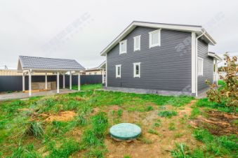 Дом обшит внутри деревом имитатор бруса. Снаружи фиброцементный сайдинг. Сделан навес под две машины.На участке есть скважина и био станция. Осталось завести и расставить мебель и можно жить.
