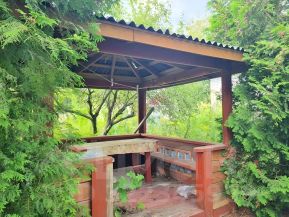 Также вас порадует после трудового дня на даче хорошая баня, в которой есть небольшая комнатка для гостей. А посидеть в уютной беседке, окруженной зеленью в жару-не захочется выходить! Теплица тоже пригодится! Участок очень живописный: большие туи и кедр с плодовых и декоративными растениями создают неповторимую атмосферу на участке.