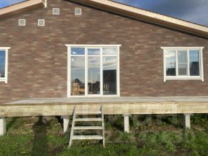 Крыша ондулин, дом обшит хаубергом в английском стиле. Стеклопакеты фирмы Melke.