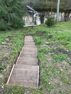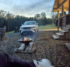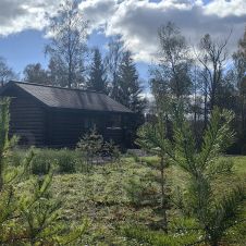 В реке рыба, ловим прям с берега. Речная форель, Окунь, плотва и ещё рыбы, которым не знаем названия. На участке высажены сосны с питомника, несколько туй.