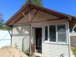 Домик сезонный, можно жить с апреля по октябрь. Дом обшит сайдингом, по основанию 6*6 м. с треугольной крышей, на бетонных сваях. Его начали строить примерно в 2000-х годах. А основательную пристройку на сваях достроили 3 года назад. Дом утеплен со всех сторон 100 мм пенопласт, установлена металлическая дверь, ставни на окнах, ролеты и видеонаблюдение по участку и дому. На 1 эт. одна комната, душевая с туалетом, веранда, кухня. На 2-ом этаже тоже одна комната и прихожая с небольшим балкончиком. Хорошие, дружные соседи. Одни живут практически круглогодично.
