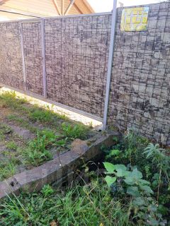 Откатные ворота, их можно сделать электрическими. Все подготовлено, только осталось двигатель установить. Забор на сваях. Заезд под 2 автомобиля, выложен тротуарной плиткой.