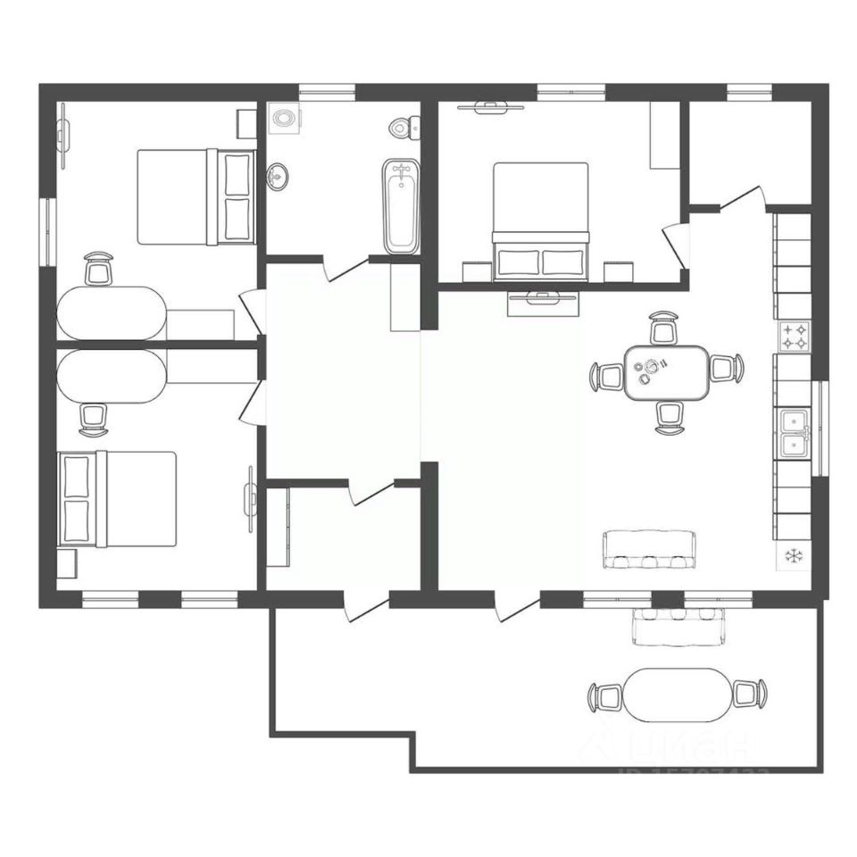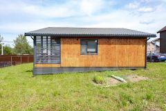 Одноэтажный каркасный дом площадью 105 м² построен по современной технологии из качественных материалов, с упором на теплоизоляцию, надёжность и комфорт.