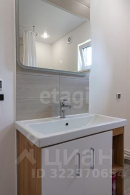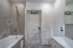 - Сантехника - раковина со смесителем на тумбе + зеркало с подсветкой, унитаз, ванна с душевой шторкой.