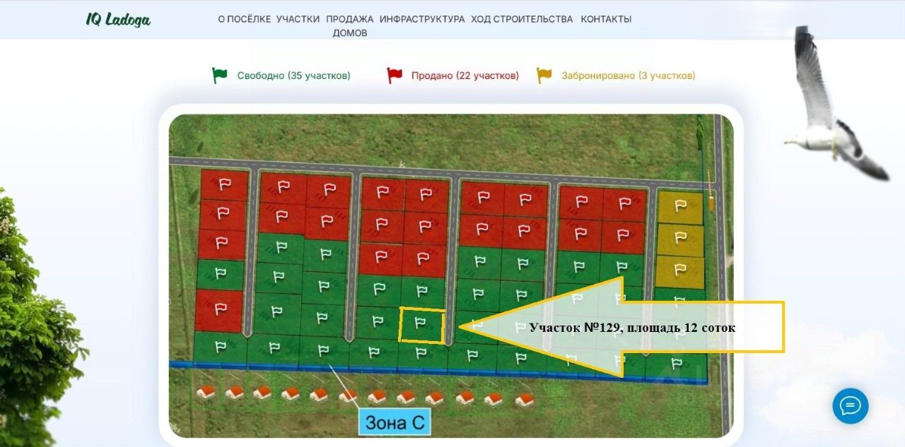 ПАРАМЕТРЫ ЗЕМЕЛЬНОГО УЧАСТКА: Участок правильной формы ровный и сухой. КАТЕГОРИЯ ЗЕМЕЛЬ: Земли населенных пунктов. Площадь участка 12 соток. Кадастровый номер: 47:26:0108001:13224. Местоположение: Ленинградская область, Тосненский муниципальный район, Федоровское городское поселение, деревня Ладога, 3-й гранитный переулок, земельный участок 10. На генплане коттеджного поселка - это зона С, условный номер 129. Участки в первой очереди строительства проданы, во второй - осталось несколько участков с видом на реку Ижора. В поселках идет активная застройка!