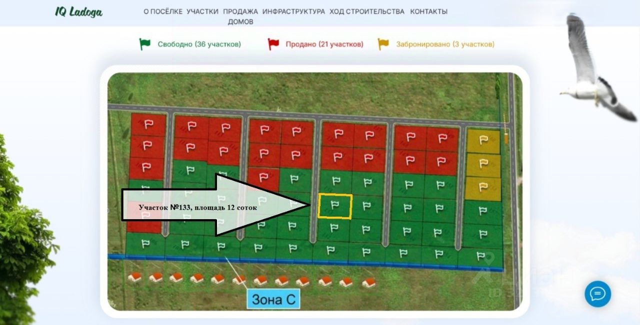 ПАРАМЕТРЫ ЗЕМЕЛЬНОГО УЧАСТКА: Участок правильной формы ровный и сухой. КАТЕГОРИЯ ЗЕМЕЛЬ: Земли населенных пунктов. Площадь участка 12 соток. Кадастровый номер: 47:26:0108001:13229. Местоположение: Ленинградская область, Тосненский муниципальный район, Федоровское городское поселение, деревня Ладога, 3-й гранитный переулок, земельный участок 7. На генплане коттеджного поселка - это зона С, условный номер 133. Участки в первой очереди строительства проданы, во второй - осталось несколько участков с видом на реку Ижора. В поселках идет активная застройка!