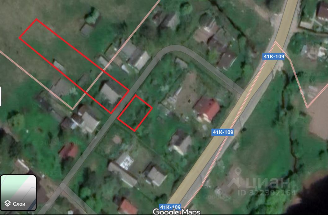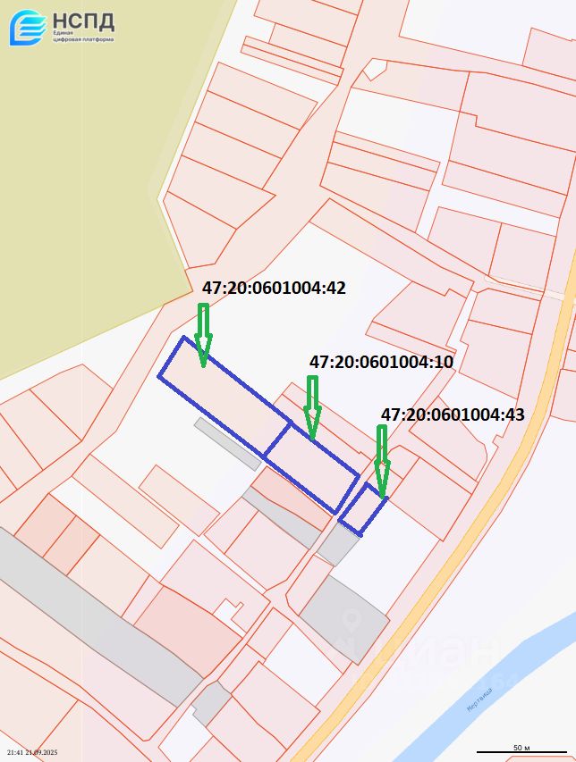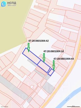 Основной участок состоит из двух частей (:10 и :42), на участке :10 у проезда расположен дом (кадастровый номер 47:20:0601004:238), в аварийном состоянии (поэтому просто прилагается к земле бесплатно =) ). И рядом небольшая хозяственная постройка (на учет не ставилась, кадастрового номера не имеет)