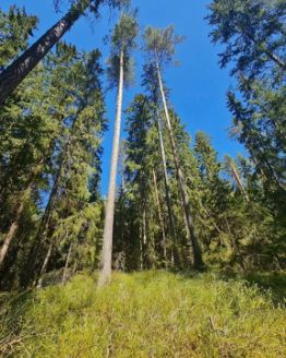 Лес прямо за участком, богатый грибами и ягодами — идеальное место для прогулок и отдыха на природе.