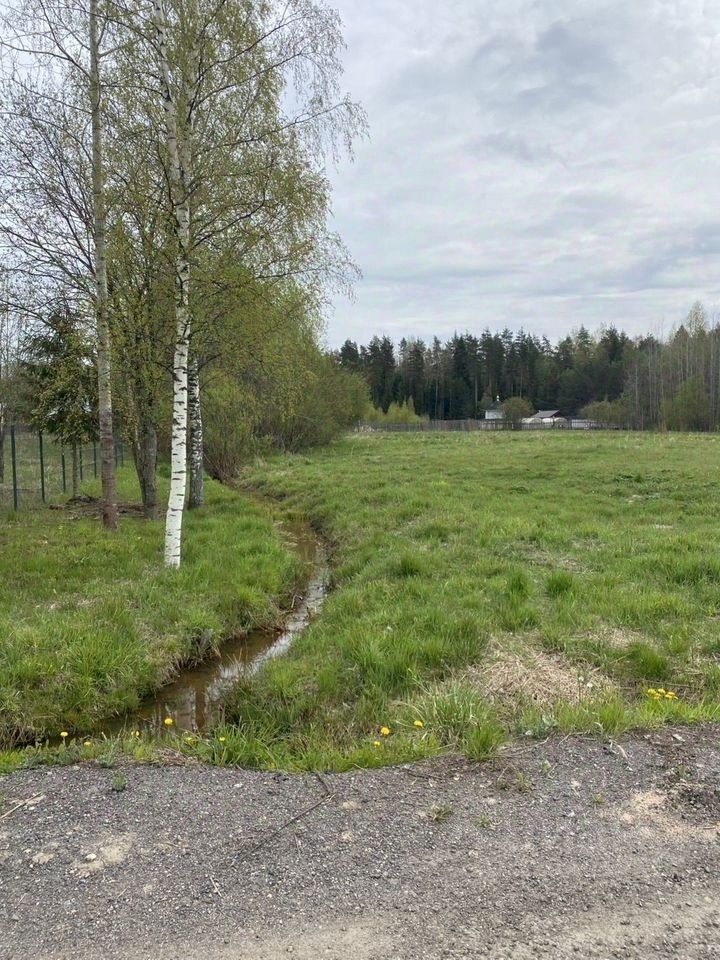 На участке есть немного деревьев и живописный ручей, при желании можно его засыпать. Высокий, сухой правильной прямоугольной формы- раскорчеван и готов под строительство.
